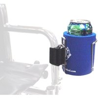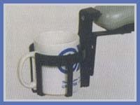 Clamp-on drink holder for walkers, rollators, wheelchairs, transport Clamp-on drink holder for walkers, rollators, wheelchairs, transport chairs and bed rails. Plastic. Accommodates bottles, cans and mugs. chairs and bed rails. Plastic. Accommodates bottles, cans and mugs. Slotted on 2 sides to hold a cup with handles. Slotted on 2 sides to hold a cup with handles.